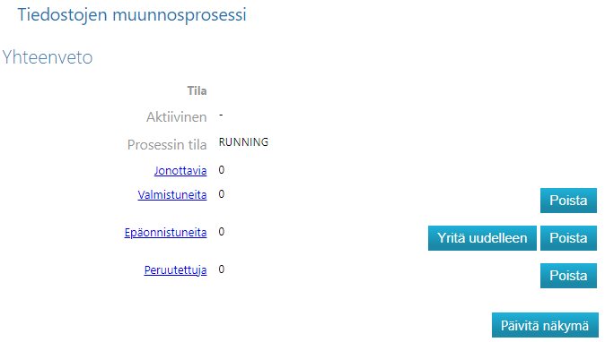 Toiminnolla voit tarkastella tiedostojen käännösten muunnostilannetta.