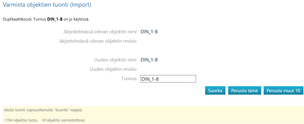 - Peruuta tämä: Objektia ei tuoda vanhan päälle.