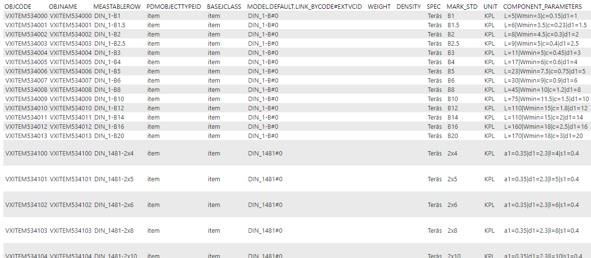 Mikäli tuot vain ominaisuustietoa, (esim. nimikkeet, rakenteet, asiakkaat, projektit) yleisin tuonnin muoto on Excel-tiedosto.