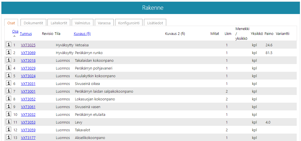 Tuoterakenne eli nimikerakenne kuvaa hierarkkisesti tuotteen kokoonpanoa.