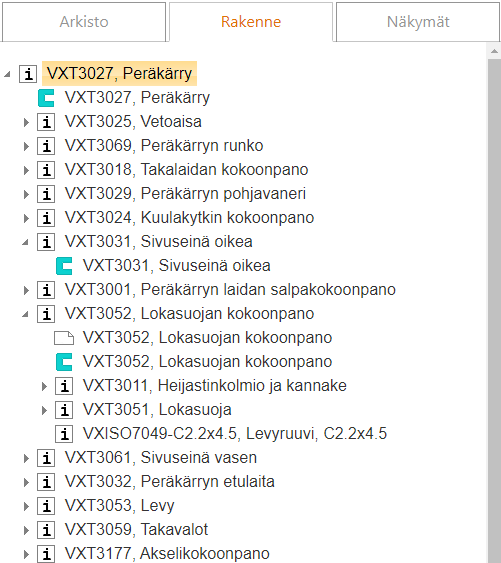 - Tuoterakenteet syntyvät mm. kun Vertex G4:llä tai SolidWorksillä mallinnetaan kokoonpanoa, jossa käytetään tai johon perustetaan uusia osia tai alikokoonpanoja kuvaavia nimikkeitä.