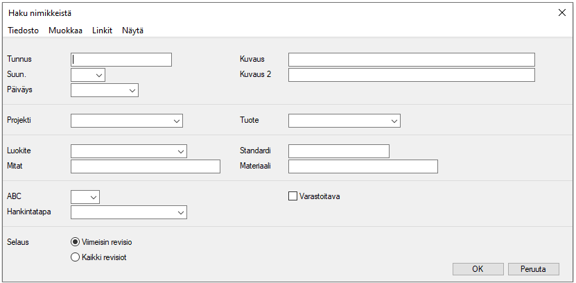 - Vertex G4 avaa keskusteluikkunan Haku nimikkeistä.