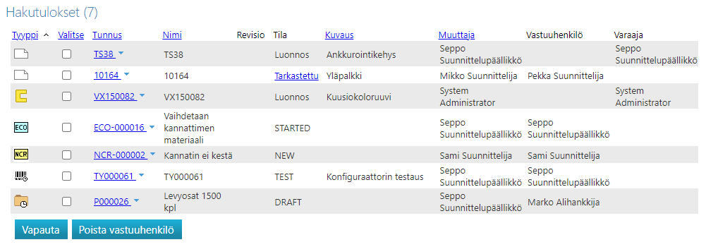 Toiminnolla voit myös vapauttaa objektien varauksia tai poistaa vastuuhenkilö-määrityksiä objekteilta.
