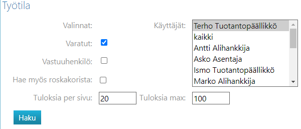 - Voit etsiä myös muiden käyttäjien varaamia ja vastuulla olevia objekteja