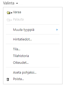 Valintaobjekteja etsitään, lisätään ja käsitellään samoin kuin kaikkia muitakin objekteja.