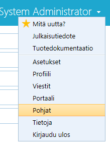 Valitse käyttäjäprofiilisi alasvetovalikosta "Pohjat": |