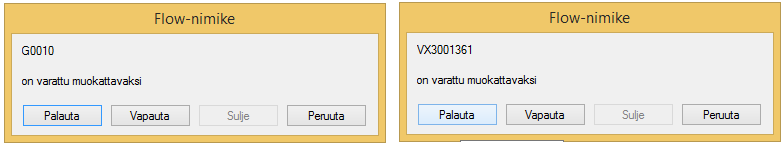 - Muokkaa-toiminto pyytää joko palauttamaan tai vapauttamaan aktiivisena olevan nimikkeen, ennen kuin ao. nimike varataan muokattavaksi.