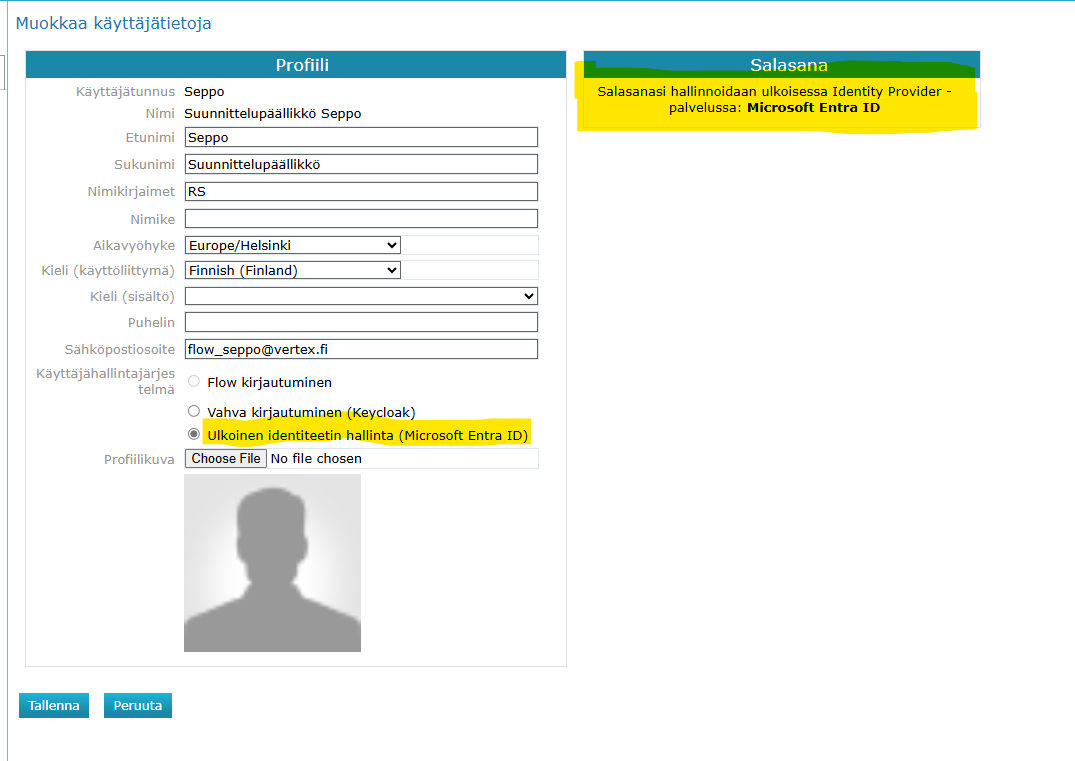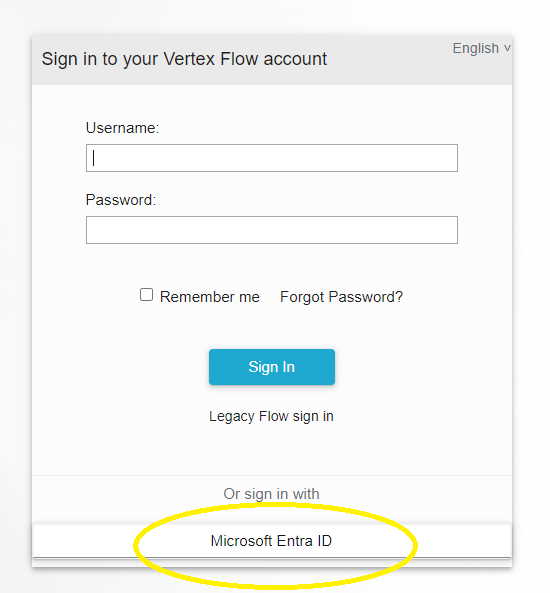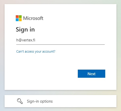 Käyttäjän ohje: Vertex Flow ensikirjautuminen Entran kautta (tai muun Identity Providerin kautta)