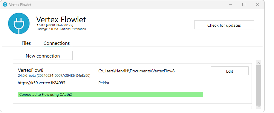 Nyt Flow on valmis käyttöösi selaimella. Jos selaimen ylänurkan Flowlet-valo ei ole vihreänä, paina F5.