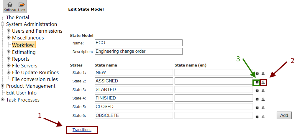 - Valitse Portaali > System Administrator >Workflow > ECO