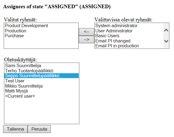 - Käyttäjäryhmistä, joille viesti tilasiirtymistä lähetetään