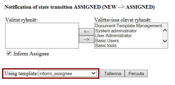 - Valitse viestipohjaksi inform_assignee