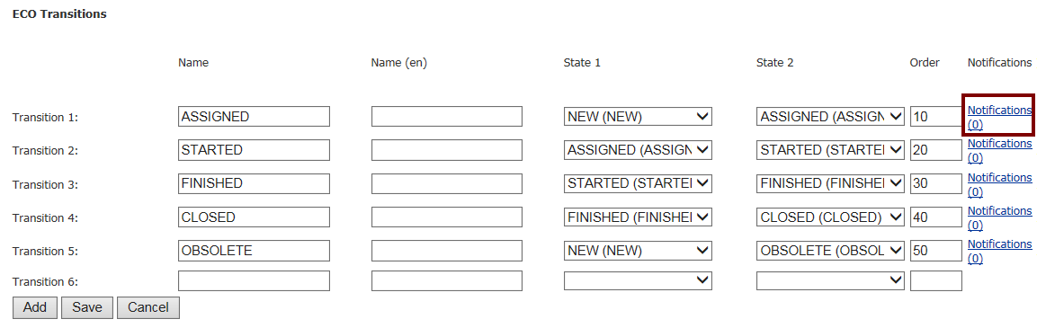 - Muutos-objektin (ECO) tilan muutoksesta lähetetään viesti vastuuhenkilölle. (Tila vaihtuu, vastuuhenkilö ei välttämättä vaihdu)