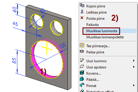 Valitsemalla piirrepuusta Luonnos-vaiheen ja tilannekohtaisen toiminnon: Muokkaa.