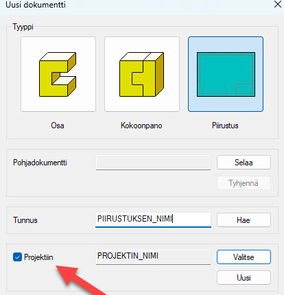Voit myös valita projektin Dokumentit > Piirustus-kansion alta.