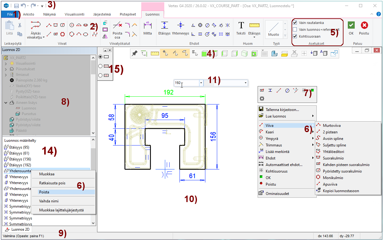 - Tämä on yhteinen valikko kaikille Vertex G4:n työskentelytiloille.