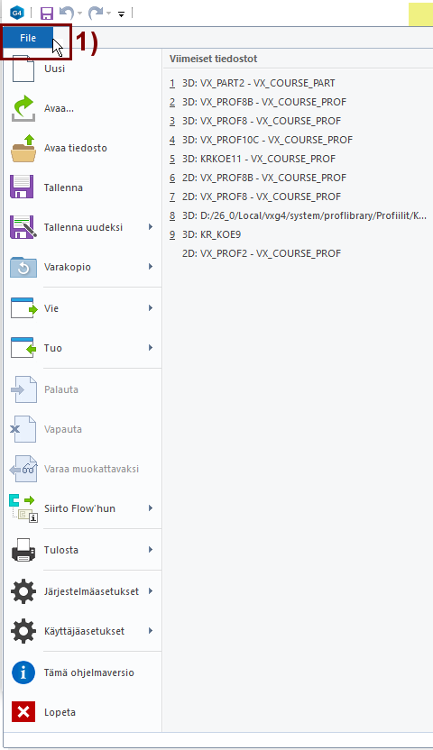 1) Tiedosto-valikko (File Menu)