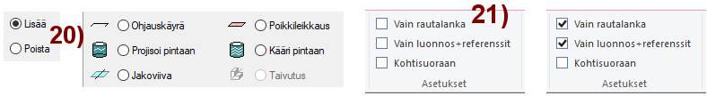 - Nämä näkyvät vain luonnostilassa ja kokoonpanossa.