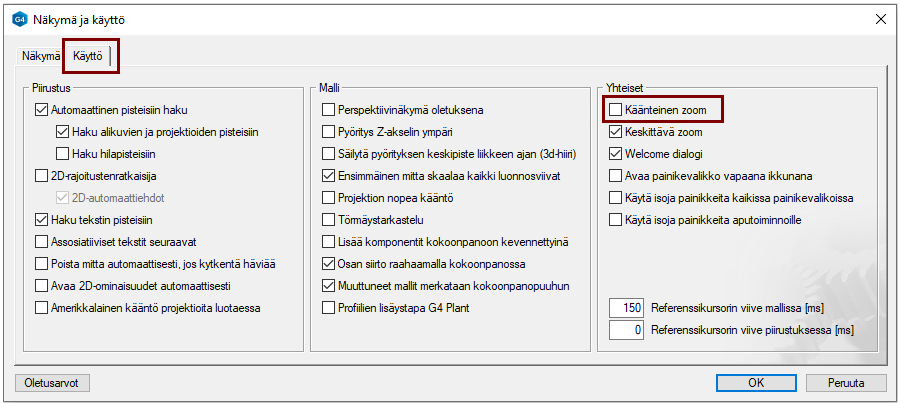 Jos olet sitä mieltä, että rullan liike zoomaa väärään suuntaan, niin voit vaihtaa suuntaa: