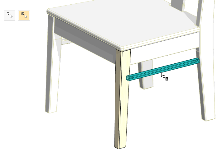 Jos Valitse myös muita osia osan tai alikokoonpanon muokkaustilassa on valittuna, voit osoittaa muita osia malli-ikkunassa.