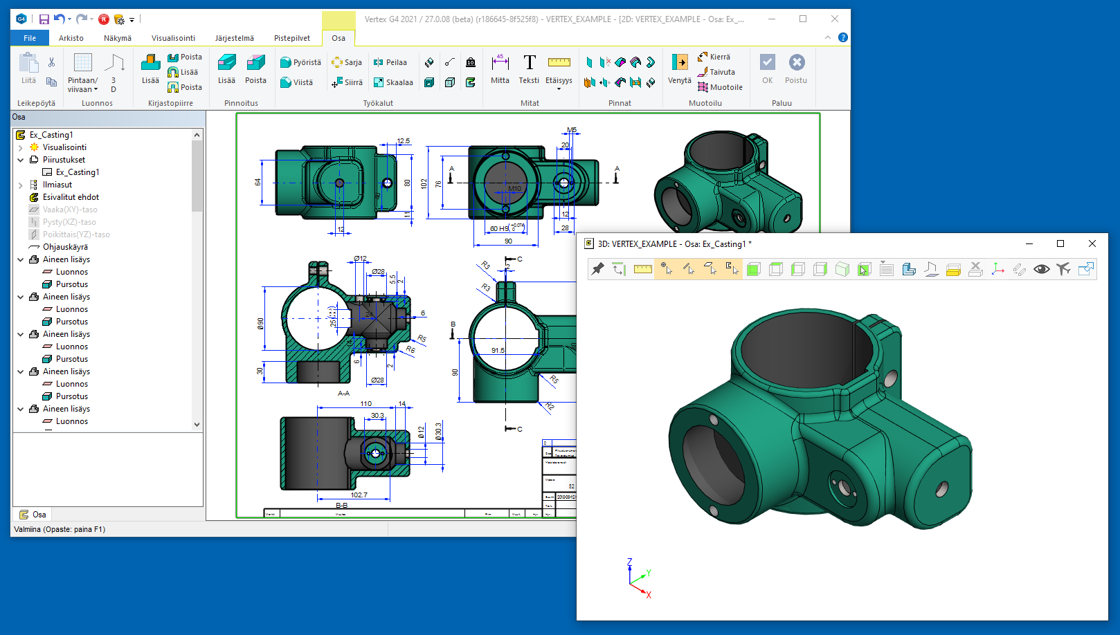 = Muiden osien geometriaa on käytettävissä luonnoksen ehtoja annettaessa.