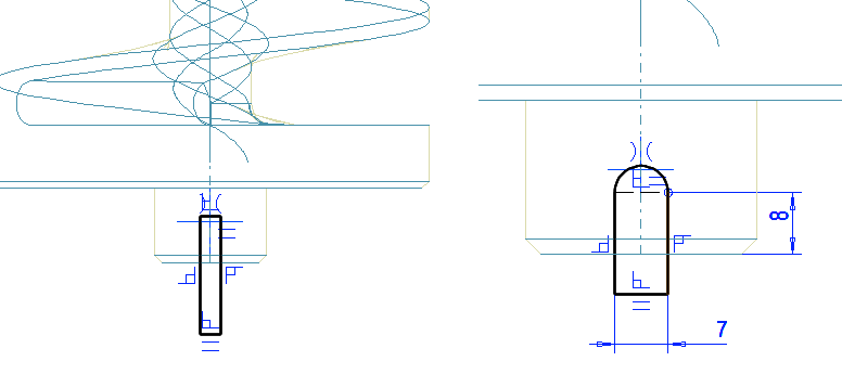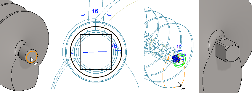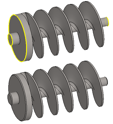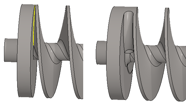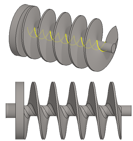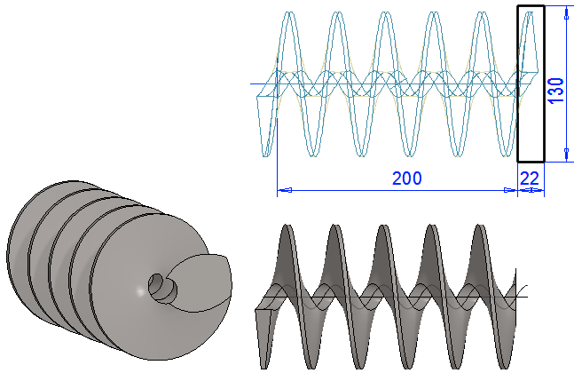 Pyyhkäisyn seurauksena ruuvin pinnat ovat spline-pintoja. Jotta kierukka menisi mahdollisimman välyksettömästi sylinteripinnan sisään, on mallia muokattava siten että ulkopinnasta tulee sylinteri-pinta.