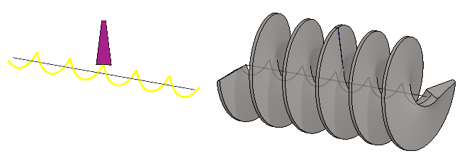 Pyyhkäisemään poikkileikkauksen pitkin spriraalikäyrää.