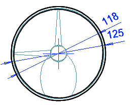Mitoita ympyrät. Sisempi 118 ja ulompi vähän suurempi, kuin ruuvin nykyinen ulkokehä, esim. 125.