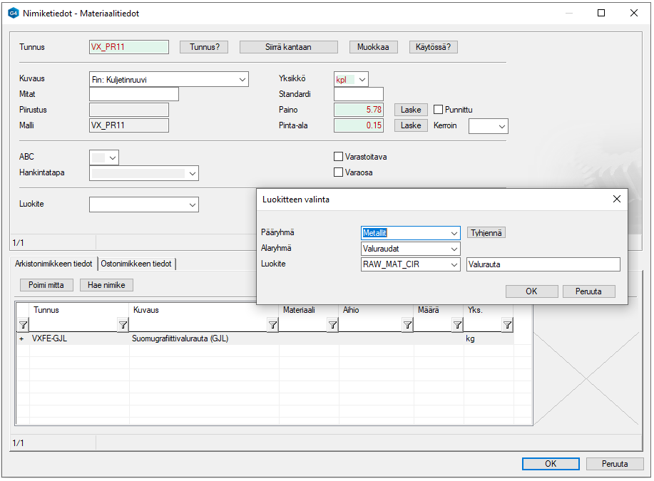 Katso tarkemmin harjoituksen Mallin piirustus kohtaa Annetaan mallille raaka-aine eli osaluettelo-tieto.