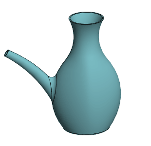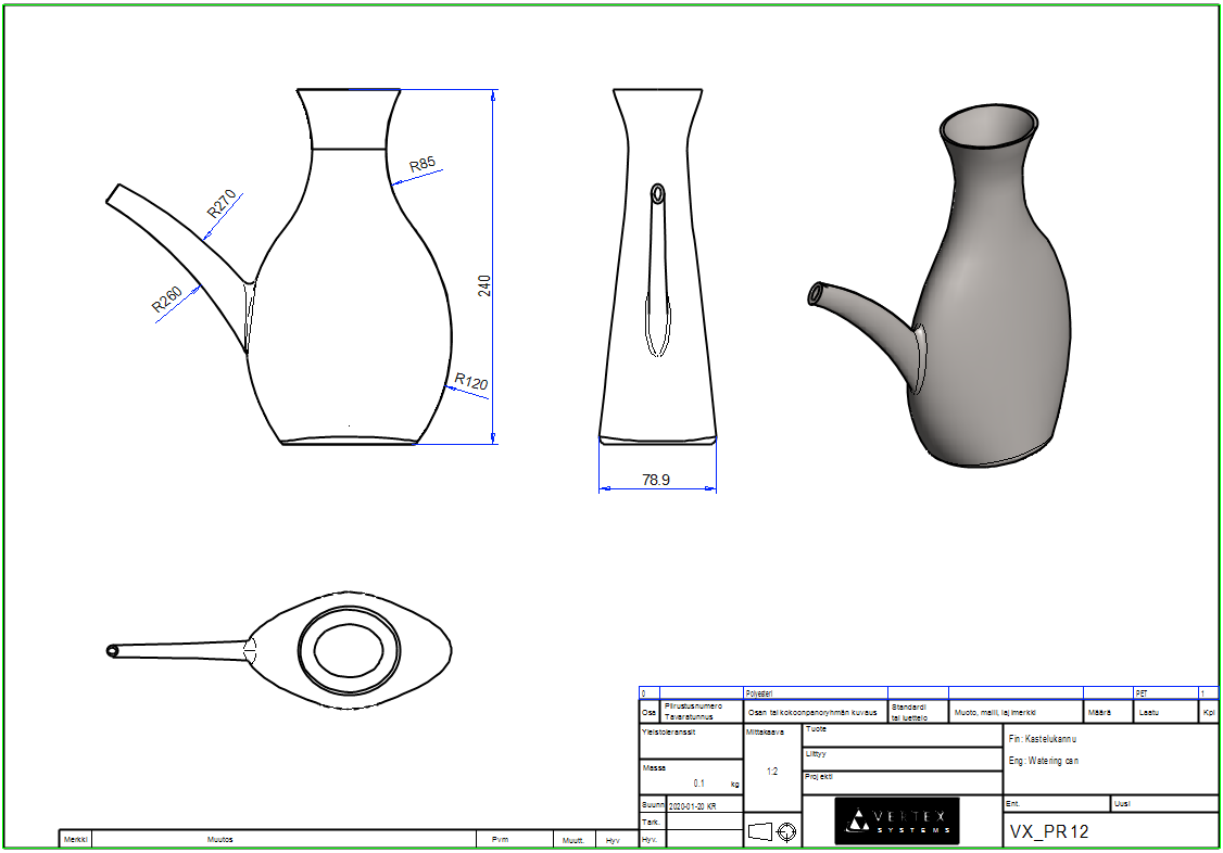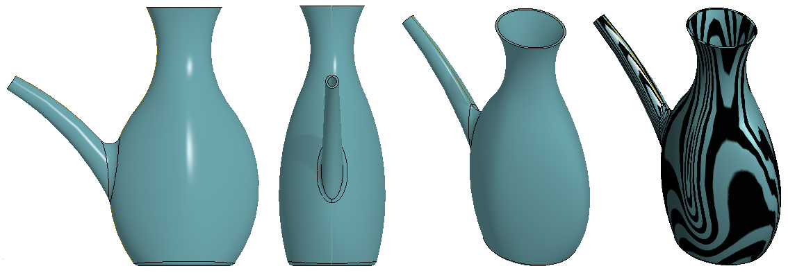 Tässä luonnoksessa nuo kolme pisintä viivaa on korvattu symmetrisillä viivoilla ja mukana on lisäksi ohjausviivat kastelukannun sivusuuntaista muotoa varten.