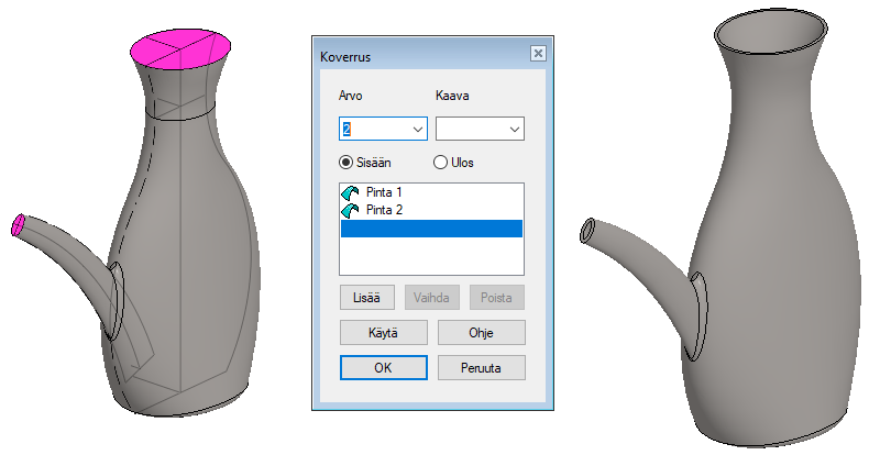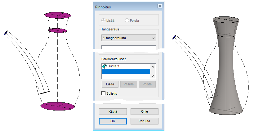 Valitse pinnoituksessa syntynyt pinta (tässä tapauksessa kaikki pinnat kelpaavat).