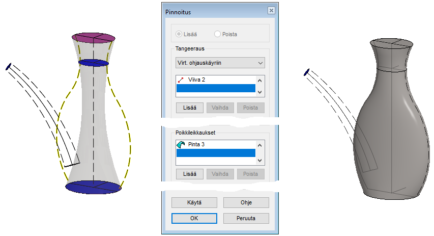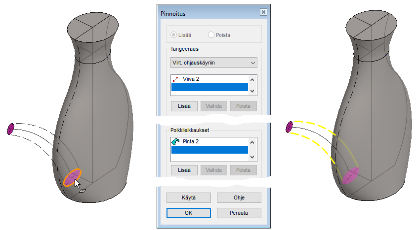 Ohjaamaan pinnoitustoimintoa tangeeraavien ohjauskäyrien avulla.