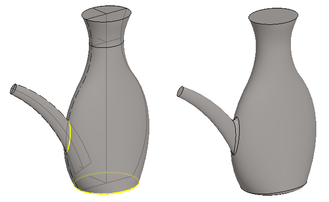 Lisää pyöristys nokan ja rungon väliin sekä pohjaan.
