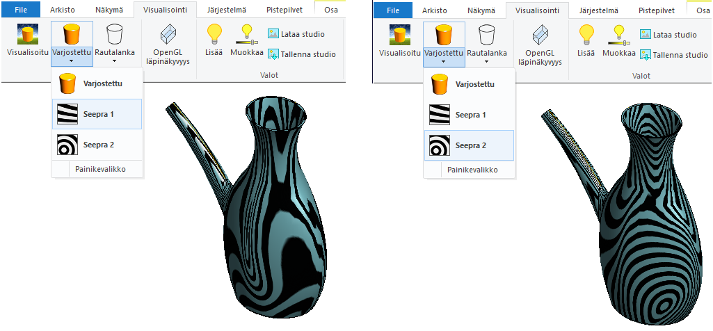 Valitse kolme vaakatasossa olevaa (kannun runkoa kuvaavaa) poikkileikkausta.