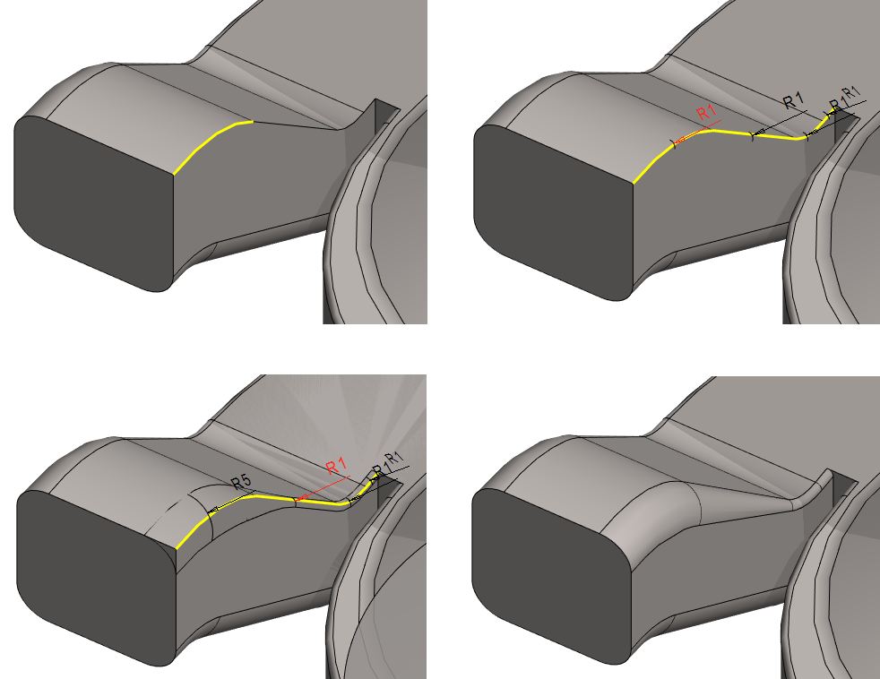 Lisää muuttuvasäteinen pyöritys nokan ylempään sisäreunaan
