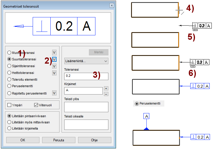 Toiminto: Merkinnät > Geom.toleranssi. Kuva B.