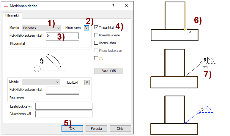 Syötä hitsisauman poikkileikkauksen mitat. Kuva 3).