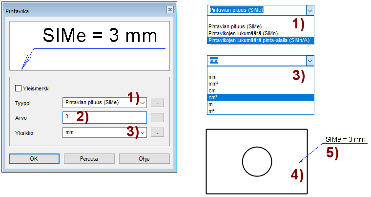 Toiminto: Merkinnät > Pintavika.