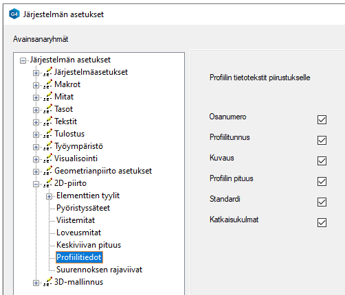 Profiilin tiedot 3D-mallin piirustuksista