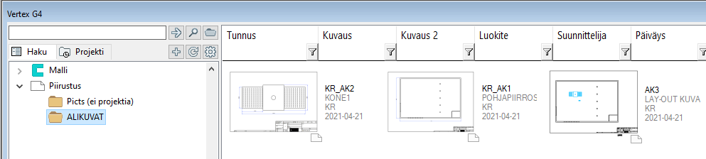 Hae arkistosta piirustus AK2 (Projektista ALIKUVAT)