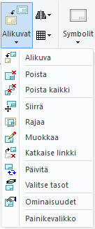 Alipiirustuksia voit käsitellä vain käynnistämällä Alikuvat-valikon toiminnon ja osoittamalla sen jälkeen alipiirustuksen.