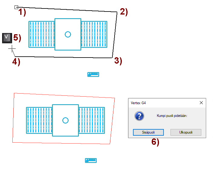 Osoita rajattavan alueen nurkkapisteet. Kuva 1) ... 4).