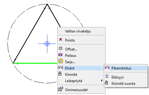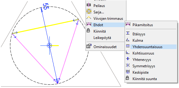 Tilannekohtainen valikko: Ehdot > Yhdensuuntaisuus.