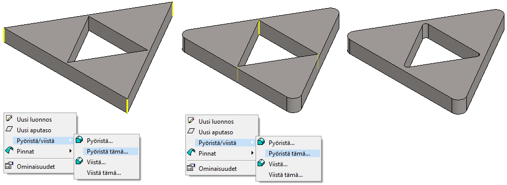 Viereisessä kuvassa on tehty kaksi erillistä pyöristystä.