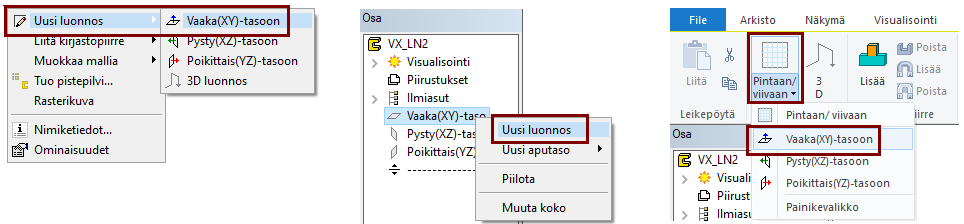Luonnostelun perustasoon ja tasopintaan.