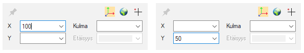 Kun käytät pilkku-näppäintä, niin kohdistin hyppää X-suunnan syöttökentästä Y-suunnan syöttökenttään, joten sinun ei tarvitse vaihtaa kenttää hiirellä osoittamalla tai tabulaattorilla (Jotka toki myös käyvät kentän vaihtoon).