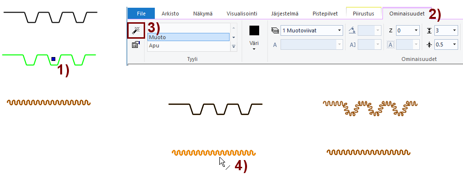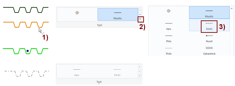 Valitse viiva, esim yhtenäinen murtoviiva. Kuva 1).