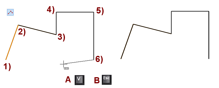 Napsauta toistamiseen hiiren keskinäppäintä (ennen kuin osoitat uuden murtoviivan ensimmäisen pisteen) tai