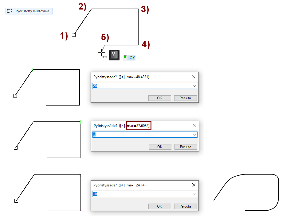 Toiminto: Älykäs viivaketju > Taivutusviiva