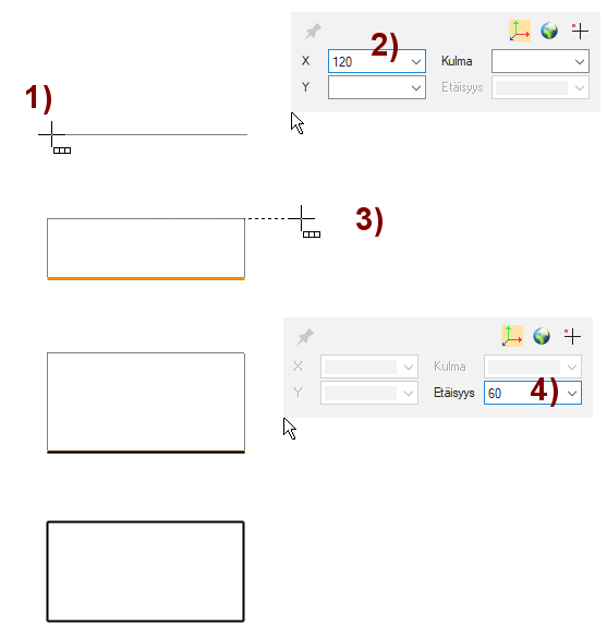 Syötä numeronäppäimillä suorakulmion pituus: 120. Kuva 2).
